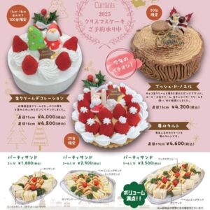 だんだんと寒くなり、冬の気配が近づいてきました。 今年も、カレンズの「クリスマスケーキ」と、「パーティサンド」「ホールピザ」でクリスマスを過ごしませんか? ご予約承っております。 ご予約の方お一人様に ...